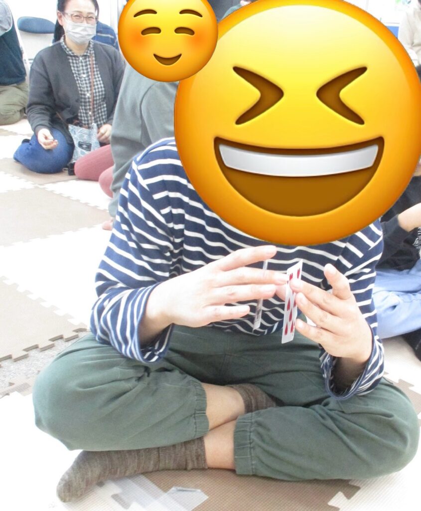 その後、子どもたちも参加してのマジック教室を行いました。カードを入れ替えるマジック、一万円札を一枚から二枚に増やすマジックを教えてもらいました。みんな熱心にマジックを練習しました😊